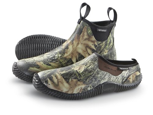 Men's Guide Gear Hunter Mids, Mossy Oak Licensed Mossy Oak camo takes the floor! Whether you're nailing waterfowl, upland game, big game, small game, varmints or pests... these go-getters are for you! Common features: Waterproof, rubber-clad, neoprene uppers for bone-dry feet; Rubber "calendar" outsole has a date with top traction; Removable, polyester, polyurethane insole for comfort.; Dual pull-on loops. Each approx. 6"h., 19 ozs. State Size. Medium width. Half sizes, order the next larger full size. Order Today! Men's Guide Gear Hunter Mids, Mossy Oak