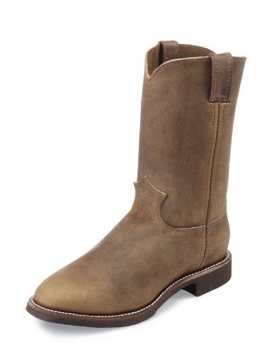 Justin 10" Ropers. Do away with the "bad and the ugly" and just give you "the good!" Mount up! Actually, nevermind "good," these Western beauties are great! Back when founder HJ Justin founded the company over 100 years ago, he made the statement that's still the Justin creed of quality today: "No boot shall ever bear the Justin brand unless it is the very best that can be produced from the standpoint of material, style and workmanship." The best by design: Cowhide upper and vamp; Single stitched welt; Roper toe; Shock absorbing Double Comfort insole with removable orthotic insert; Nitrile rubber outsole for a firm grip on the ground under you. 10" overall. 30 ozs. each.; State Size. Order Today! Men's 10" Justin Ropers, Bay Apache