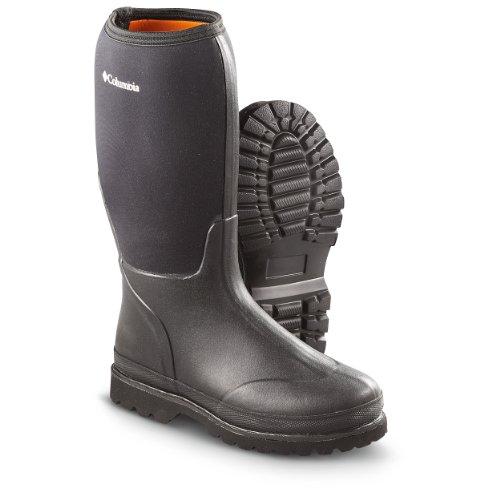 Columbia Homestead Boots. Sure - fire footwear for wet, sloppy weather! 100% waterproof. Reliable traction. Famous Columbia reputation. If ugly, nasty weather is trying to trip you up, these Boots are equipped to march right through it! Boots that handle crummy weather like a walk in the park: Waterproof 7 mm neoprene uppers; Comfort cushion insole; Flat, high tread rubber outsole for extra traction; Black with blaze orange lining; 37 ozs. each. 16" h. Imported.; State Size. Order Today! Men's Columbia Homestead Boots, Black