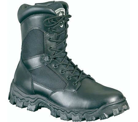 Rocky Boots are quality boots made of the finest, longest lasting materials. The Rocky brand is the world leader in rugged boots and shoes and occupational footwear. For any law enforcement personnel or duty boots Rocky is the world leader. ?..Each Rocky Boot Collection is made for Long Lasting Comfort and Durability.8" Black Full Grain Leather and Lightweight 1000 Denier NylonTerra Suspension FootbedGuaranteed ROCKY Waterproof ConstructionOil and Slip Resistant RigiTrac OutsoleXtremium Composite Toe Rated ASTM F2413-05 M I/75 C/756169 Rocky Men's AlphaForce Safety Boots - Black