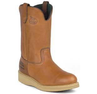 Georgia Boots gives us another great Wellington boot with G5153. These boots feature a full grain leather with flex notched quarters. With a steel shank and Proprietary Oil resistant polyurethane wedge outsole, these boots are top of the line. The durable Goodyear welt construction is long lasting and even replaceable