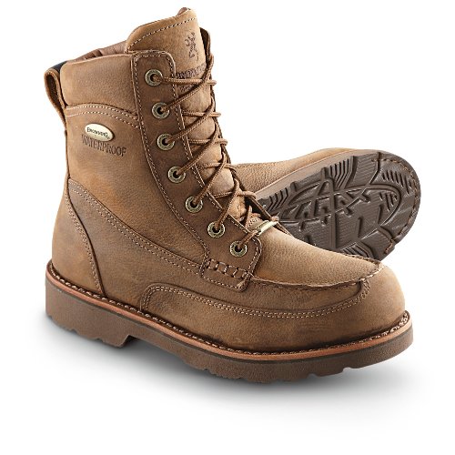 Browning 8" WATERPROOF Upland Boots, BIG BUCKS OFF! Browning Waterproof Upland Hunting Boots, birding and general field specialists that make your adventures even more of a pleasure. With "last season's" big SAVINGS and wide sizes! The famed Browning name with the quality it always assures: Waterproof full-grain leather uppers, tough and flexible; Browning 100% waterproof membrane; Lightweight, blown rubber outsole with positive traction; Removable padded insole; Padded leather tongue and collar; Moisture-wicking lining; 3/4-gusseted to keep out wet and debris; Repairable Goodyear leather welt for added stability.; Each approx. 8"h., 29 ozs.; State Width and Size. Get these exceptional Hunting Boots now! Men's Browning 8" Waterproof Upland Boots, Brown