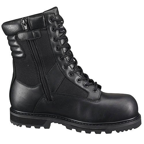 Thorogood 8" Side - Zip Composite Safety Toe Trooper Boots... toe protection for in - the - field toughness! To rule the road, you need the comfort and rugged durability of this Trooper Boot from Thorogood! You take your role seriously, so zip and lace up these bad boys... they mean business. A GEN EX dual-density lug is abrasion and slip-resistant for long-lasting, on-duty toughness. A dual-density polyurethane removable insert features a special EVA cushion flex to offer you a comfortable surface when you step out of your vehicle. And this baby is puncture-resistant, too... roadside hazards can't beat these Boots! More: ASTM F 2413-05 M/I/75/C/75 composite safety toe; Black oil tanned leather upper with rugged 1,000 denier nylon panels; Durable Goodyear welt construction; Dri-Lex Aerospacer lining for moisture-wicking comfort; Shock-absorbing EVA midsole; Sturdy composite shank; Has heavy-duty YKK side zipper with VELCRO-brand closure and lace-up closure; Electric Shock resistant; Each Boot weighs approx. 30 ozs.; State Size. Order yours now! Men's Thorogood 8" Side-Zip Composite Safety Toe Trooper Boots
