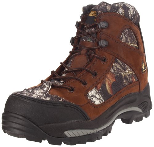 Golden Retriever 6" Plain Toe Waterproof Hunting Boots keep your feet covered for bone - dry comfort, all day! Once you're in the field on a hunt, there's no turning back, so it's best to get your footwear right the first time around. Here, these full-grain tumbled leather, waterproof uppers combine with a Dry Dawgs waterproof / breathable membrane to keep moisture off your feet. They're comfortable too, with a polyurethane midsole to absorb shock while the TPU stabilizer keeps each step on the straight and narrow. DRi-LEX ECO footbed cover wicks moisture to keep feet dry and comfortable; PU footbed treated with Aegis Microbe Shielto control foot odor; Oil, slip and abrasion-resistant NRLY rubber outsole; State Size. Pick yours up today! Men's Golden Retriever Plain Toe Waterproof Hunting Boots, Brown / Mossy Oak Break Up