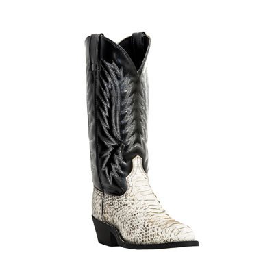 Men's Laredo Python Print Boots offer exotic Western flair. Strut your stuff! Sexy 2 tone. BIG BUCKS OFF! Look who just waltzed into Dodge! Not Deputy Festus. Not steely eyed Matt Dillon. Why it's YOU in these attention-grabbing Laredo Western Boots. Just the footwear with a spark of pizazz at rodeos, high-noon shootouts, horse auctions, town hall meetings and shaking the 2-step at the local hootenanny. These top-grade Boots look expensive. NOT. Due to our volume buy, you can ride a buckboard bargain with BIG BUCKS OFF! That's more like it! Tall in the saddle: Python print leather foot meets a synthetic leather shaft with stylish Western accents; Sure-grip composite rubber outsole; Repairable 3/4-Goodyear welt for stability; Permanent, padded, leather and fabric-lined insole for comfort; Moisture-wicking polyester lining; 1 3/4" heel for lift; Dual pull-on loops; Each approx. 11 1/2"h., 24 ozs. State Color; Width: medium or extra-wide; and Size. Rope in your new Boots now! Men's Laredo Python Print Boots