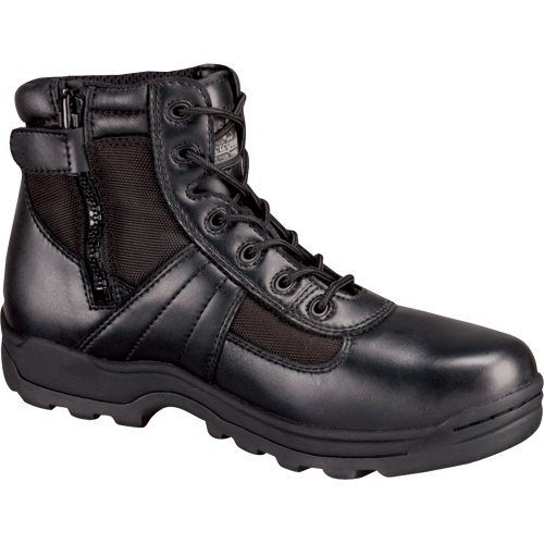 These are the 6' Waterproof Side Zip Composite Safety Toe work boot. These are a Black Full Grain Leather/Black Action Leather/1200 Denier Nylon. They have an interior Two Tone wicking Mesh/Thoro-dri Waterproof System, and the Blood Borne PathogenCompliant. It has a removable Two Density Polyurethane 'Shock Zone' Footbed with Air Flow Vents. They are equipped with a composite shank and a Two Density Rubber with Integrated EVA Impact Pads. They also have the ASTM F 2413-05 M/I/75/C/75 Compositesite Safety Toe. These were also tested and passed the CAN/CSA-Z195 18,000 Volt Electric Shock Resistant Standard. Finally, they have an exterior Heavy Duty YKK Side Zipper.