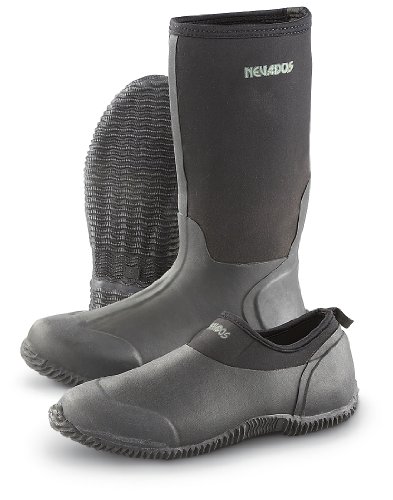 WATERPROOF Nevados Boggers. BIG BUCKS OFF! High or low, they're the way to go! Fashion-forward, highly durable footwear in both Men's and Women's sizes. No matter how soggy the conditions, your dogs will stay dry when you wrap 'em up in these. Don't miss out on deeply discounted Close-Out pricing right here! No wet, you bet: Waterproof rubber foot and neoprene uppers wear for ages, seal out the dampness; Rubber outsolegrips even in wet conditions; Removable polyester-lined EVA insole; Reinforced toe and heel add major durability. High: Approx. 14"h., 23 ozs.; State Size, as available in the Shopping Cart below. Medium width. Treat your feet right here! Act Now! Men's High Waterproof Nevados Boggers, Black