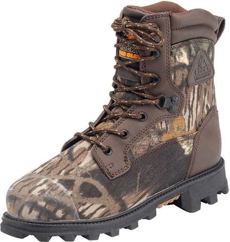 Full-grain brown leather trim and Mossy Oak Break-Up nylon, Guaranteed Rocky(r) waterproof, 1000g Thinsulate(r) Ultra insulation, Rocky 3D welt construction, BearClaw(r) 3D outsole