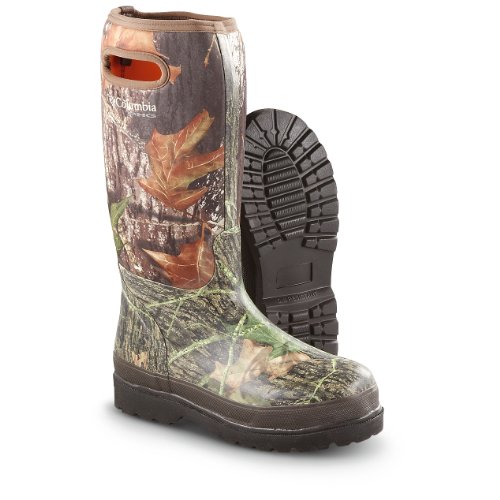 Columbia Homestead Boots. Sure - fire footwear for wet, sloppy weather! 100% waterproof. Reliable traction. Famous Columbia reputation. If ugly, nasty weather is trying to trip you up, these Boots are equipped to march right through it! Boots that handle crummy weather like a walk in the park: Waterproof 7 mm neoprene / lightweight rubber uppers; Comfort cushion insole; Flat, high tread rubber outsole for extra traction; Each approx 14" h., 30 ozs. Imported.; State Whole Size. Half Sizes, order the next Whole Size up. Order yours today! Men's Columbia Homestead Camo Rubber Boots