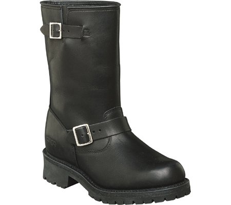 All Over Leather Wellington 10" Pull-On Engineer Boot Buckle Straps Comfort Cushion Insole Oil and Chemical Resistant Outsole Engineer Toe DI19040 Dingo Men's Rob Harness Motorcycle Boots - Black