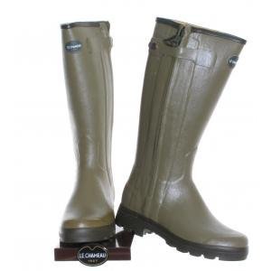 I tried 4x to find the best Le Chameau boots for me - thank you Amazon and Endless for your return policy. It's hard to fit Le Chameau boots so I am going to share with you my findings. First a bit about me - I am 5'2", 16" calf circumference, trim ankles, and 8.5 to 9 US feet. I tried the boots on with dress knee high boot socks.I was looking for a simple pair of rain boots. I couldn't try the popular women's Vierzon, Iris, or Air Confort Vierzon because the calf circumference was 15" or smaller. I narrowed my search into the men's version of the Vierzon, Vierzon Nord and Chasseur, and the women's Chassuer.Women's Chasseur - they have made these fit a women's shape so there is no extra room (very fitted). I zipped up until it hit the largest part of my calf and then I couldn't pull anymore. This was a size 40 euro and it fit my feet quite well. The finish of the boots is excellent. Ladies, if you have calves in 15" or less (or 39 cm circumference), these boots are going to make you look very very good in the rain and snow (trust me).Men's Vierzon and Vierzon Nord - the former is the basic boot and the latter is a winter version (made in Morocco). The calf area is huge at around 18". Pulled the buckle as far as I can and it was still too much. Very roomy in the toe box and up the leg area. Tried the smallest men size 8 US and it fits fine length-wise. The Vierzon Nord is quite the workout as it is very heavy (and hot!). Was not difficult to remove the boots but you did have to sit down to loosen the ankle. I would not recommend these to women as an alternative.Men's Chasseur - a tad roomier than the women's version with a 41cm calf circumference. The size 39 euro fits very well with enough room to wear thicker socks. Despite being the male version, it hit me just under the knee. I am keeping this pair.Overall, my impressions of the Chasseur boots:- the fit and finish is excellent (made in France) and I do not believe you will find anything like it- the colour is green but not repulsive green, like a dull khaki- the zipper is very difficult to pull up, you need silicon spray to ease it (included in the box), but makes it very easy to pull on and off the boots- the buckle is not just decorative, if you are too lazy to pull the zipper up all the way, you can just buckle the top and off you go- the boots do not open completely like a pair of dress boots - there is a leather fold that keeps the boots together. 41cm is a tad over 16" so if your calf is bigger, you will not fit the boots because there is no stretch (even with the combo of leather and natural rubber).- very expensive when compared to other rain boots, but you'll likely keep these for much longer because of the quality and classic look (personally, I do not see how anyone can destroy these boots)- toe box and ankle area is roomy for a woman so there is room to put in a thermal insole and wear thick socks- there is no slouch in the bottom half of the boots which makes you look good in them- bottom soles give you grip and traction- do not drive in these boots, the bottom soles make it difficult to "feel" the brake and gas pedals