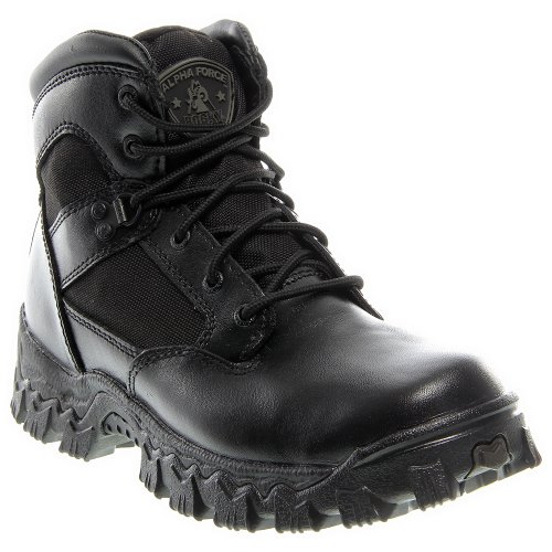 Rocky Boots are quality boots made of the finest, longest lasting materials. The Rocky brand is the world leader in rugged boots and shoes and occupational footwear. For any law enforcement personnel or duty boots Rocky is the world leader. ?..Each Rocky Boot Collection is made for Long Lasting Comfort and Durability.6" Black Full Grain Leather Lightweight Black 1,000 Denier Nylon Terra SuspensionTM Footbed Guaranteed Rocky Waterproof Construction Oil and Slip Resistant, Non Marking, RigiTracTM Outsole 2167 Rocky Men's AlphaForce Uniform Boots - Black