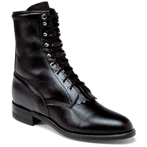 The 506 Justin Men's Classic LACE-RTM has an 8" Black Kiddie Upper and Vamp. It also features the Justin J-Flex Comfort system for a comfortable fit all day long.8" Black Kiddie Leather Justin J-Flex Comfort System Single Stitched Welt Leather Outsole J11 Roper Toe B Roper Heel 506 Justin Men's Kiddie Western Classic Lacers - Black