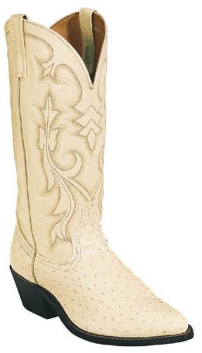 13" Leather-Like Shaft Ostrich Print Foot Comfort Cushion Insole Narrow Toe Cowboy Heel 68016 Laredo Men's Ostrich Print Western Boots - Winter White