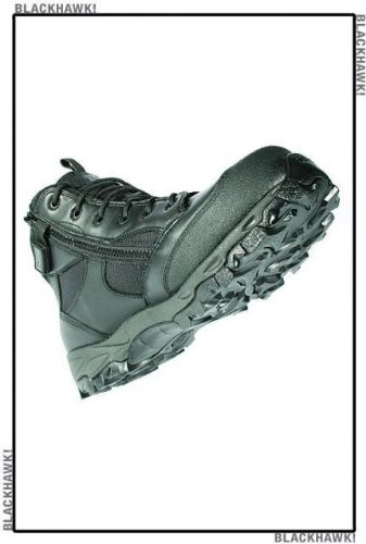 Roll out! Blackhawk Warrior Wear ZW5 5" Side - zip Boots are 100% WATERPROOF. Light at only 27 ozs. Fast on the trail. Comfortable as can be. Easy to get on when every tick counts. And 100% waterproof! Blackhawk blends top - quality components with famous military - grade construction. Truly a Boot for the modern - day warrior, with a price that won't soak up your combat pay! Quality on the march: Water - resistant Cordura nylon and high - abrasion leather uppers are light, tough; 100% waterproof barrier and gusseted tongue lock out water; Dri-Lex inner lining wicks away moisture and dries quickly; Vibram Multisport oil - resistant TC4+ compound outsole has large, open lugs for traversing debris, and provides excellent traction on uneven surfaces; Long-wearing, water-friendly PU midsole; Durable, easy - to - use molded tooth zipper opening; Washable, anti - microbial Ortholite custom - molded insole; Lightweight nylon shank aids in arch support; Each 5"h., approx. 27 ozs.; Order yours today! Men's Blackhawk Warrior Wear ZW5 5" Side-zip Waterproof Boots